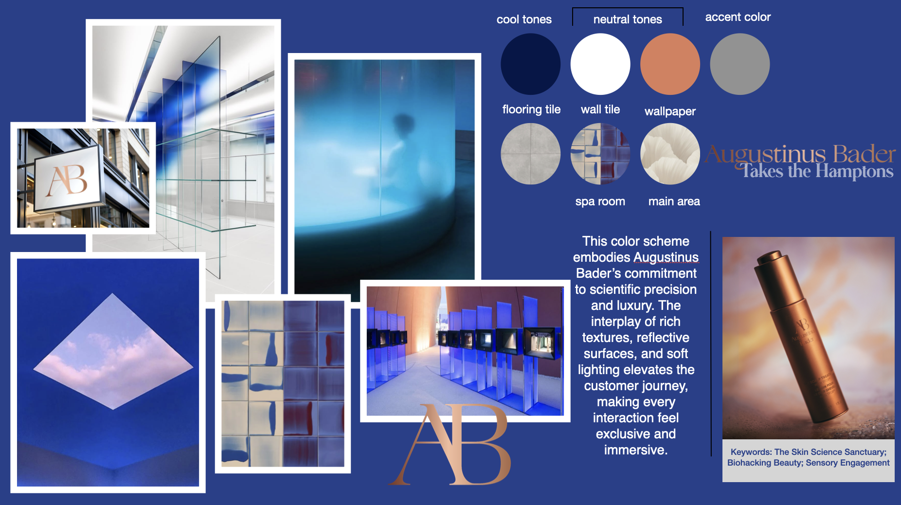 This concept develops a temporary retail environment for Augustinus Bader in the Hamptons. The aim is to turn the brand’s scientific foundation into a physical experience that increases visibility, trial, and conversion among a summer audience defined by wellness, luxury travel, and high discretionary spending.