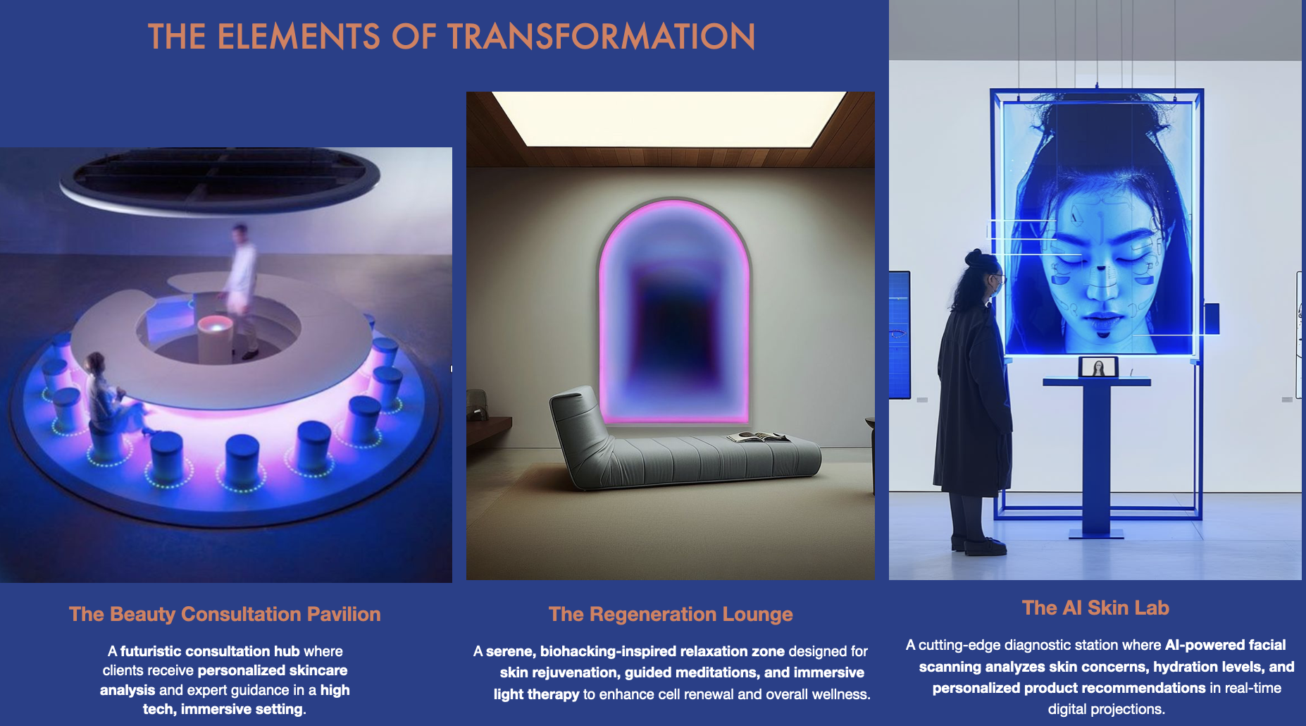 A diagnostic station using AI powered facial scanning to identify concerns and generate tailored product recommendations.