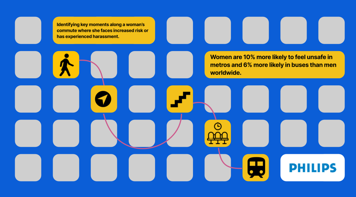 Data from the Thomson Reuters Foundation further indicates that six out of ten women in Latin America experience harassment while using public transport. Yet these incidents remain largely invisible. Poor lighting, crowd density, and social discomfort create environments where harassment feels unclear, easy to dismiss, and difficult to confront. The core insight was not only that harassment happens, but that it remains unseen because people are conditioned not to look closely.